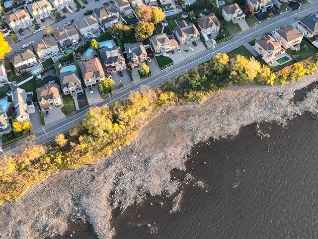 Prestigious residence overlooking the Rivière des Prairies on 9000 sq. ft. of property. 2nd floor features 4 large bedrooms, 2 bathrooms and a laundry room, superb kitchen with quartz countertops, large family room with 19 ft. ceiling, gas fireplace, heated marble floors, solid wood paneling, meticulous landscaping and heated saltwater pool.