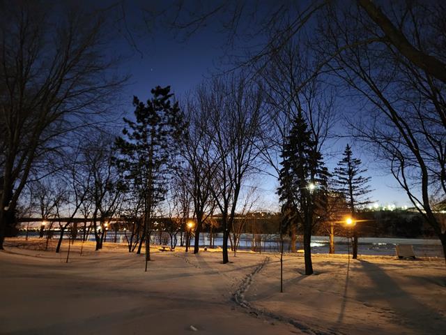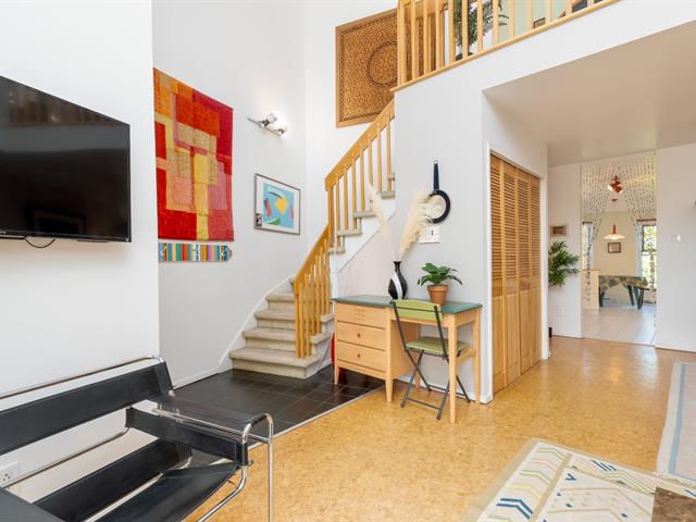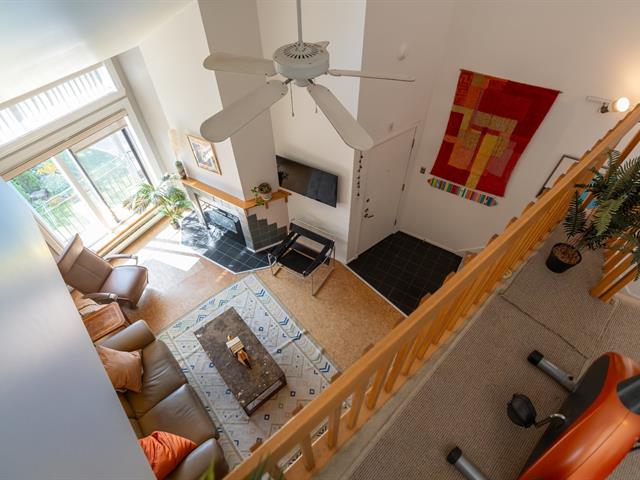 Spacious 1,220 sq. ft. condo offering exceptional natural light and a functional layout. Located on the 3rd floor of a waterfront building, it impresses with cathedral ceilings, a versatile mezzanine with generous indoor and outdoor storage, as well as a private terrace with breathtaking views of the Rivière des Prairies and lush greenery.