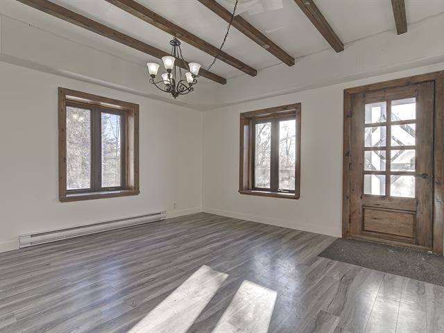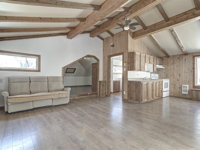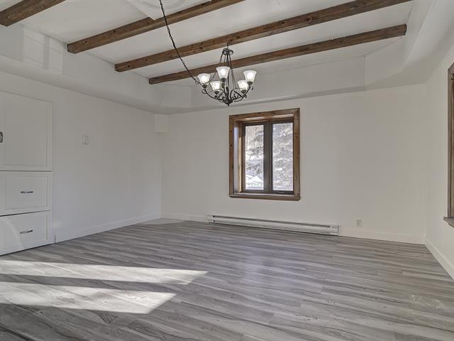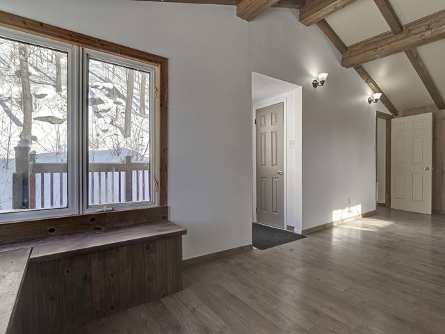 Vacant occupancy - Charming 3-bedroom, 3-story house situated on a 10,000+ sq ft private lot - perfect for nature lovers and those with multiple pets. Space available for additional buildings (garages, enclosures, etc.). Close to the village and amenities. Each floor is connected by an interior staircase, but the one between the main floor and garden level is currently blocked but can easily be reconnected if needed. Living quarters on the garden level. All floors have good natural light and a view of Lake of Two Mountains. Features include laminate flooring, ceramic tiles, PVC windows, a steel and shingle roof, and two practical outdoor shed