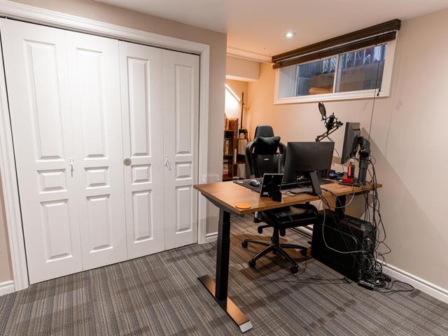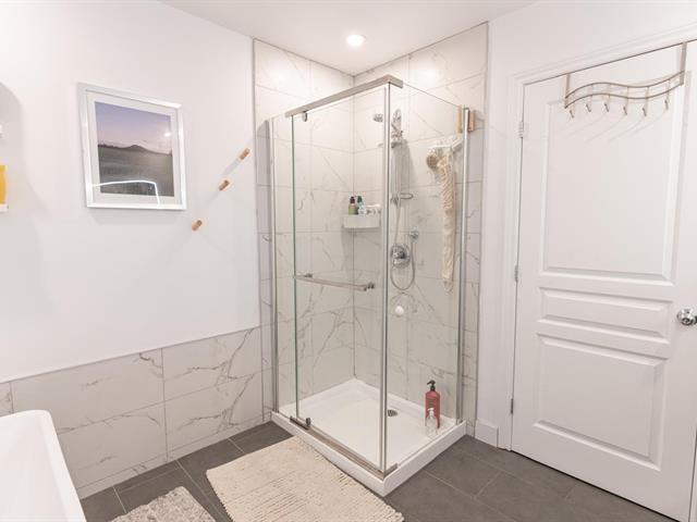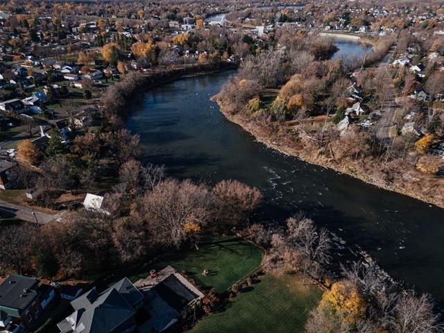 The master suite boasts a generous walk-in closet and offers a picturesque view of the nearby Châteauguay River, visible all year round. The serene surroundings allow you to hear the geese in the warmer months, adding to the peaceful ambiance.