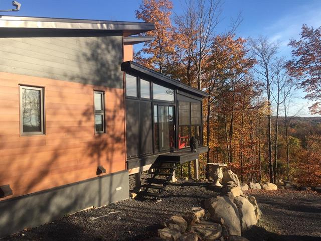 SHORT TERM RENTAL WITH ESTABLISHED CLIENTELE. Discover this welcoming and bright chalet, the ideal place to recharge your batteries. Take advantage of the SHORT-TERM RENTAL option, a rare opportunity for a high-yield investment. Located in the private Sommet estate, this property stands out for its vast open space and magnificent cathedral ceiling on the ground floor. Built in 2020, it has 3 bedrooms and 2 full bathrooms, perfect for entertaining family and friends. You can enjoy direct access to Lake Drummond for swimming or kayaking. Nature enthusiasts will appreciate the nearby hiking trails. Rare opportunity. The Art of Living with Nature