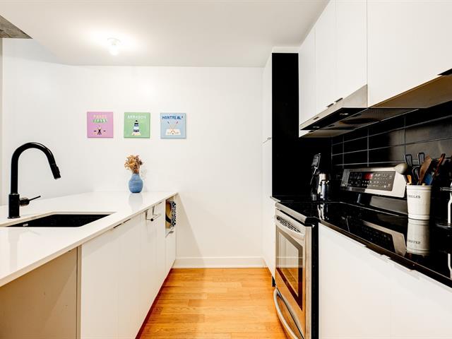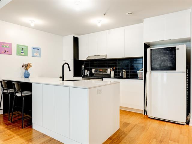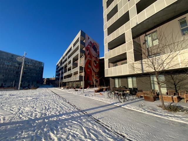 Amazing 2-bedroom condo with a beautiful open-space living area and a large terrace overlooking the pedestrian alley. The bathroom with shower and bathtub is ensuite to the master bedroom, and a spacious walk-in closet is sure to please. A locker completes your storage space. You can also enjoy the shared rooftop terrace and communal bike storage. Come experience the good life at Cité Angus II, in the vibrant Shop Angus district. Shops (microbrewery, restaurant, bakery, café, cheese shop, butcher, medical services, grocery store) are just steps away. Enjoy a truly high quality of life with Jean Duceppe Park right next door.