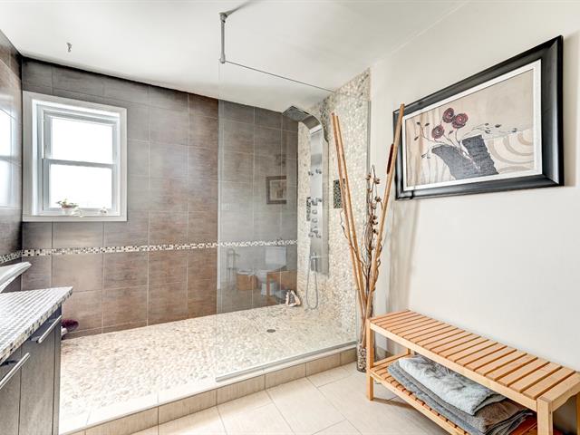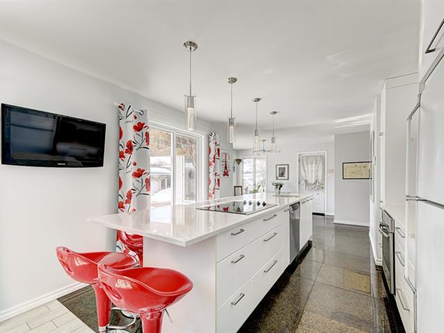 Beautiful and spacious cottage offering 4+1 bedrooms in a sought-after family-friendly Saint-Luc neighborhood. Several renovations over the years, including a stunning renovated kitchen featuring an 11-ft island, quartz countertops and heated floors, open to the dining room for a bright and welcoming living space. Large living room with wood fireplace and renovated powder room. Upstairs offers 4 bedrooms, including the primary with a French door overlooking the backyard. Bathroom with heated floors and river stone shower. Finished basement with family room, 5th bedroom and storage. Private yard with in-ground pool and mature trees. A must see