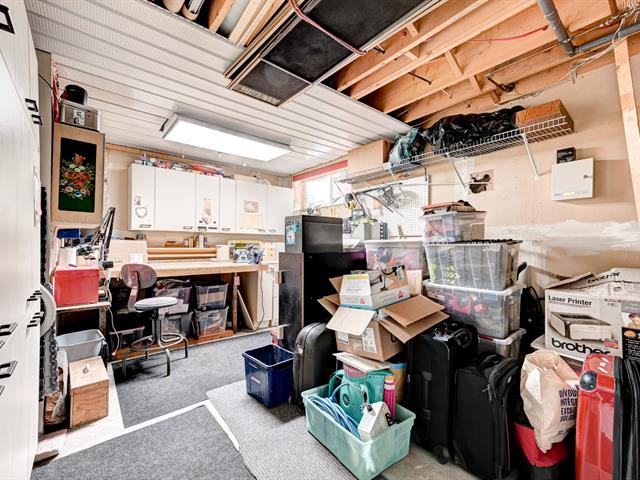 The fully finished basement offers a large family room with heated floors, ideal for relaxing moments. It also includes a fifth bedroom as well as a spacious storage area with laundry space and a workbench. Part of the space could easily be converted into a sixth bedroom depending on the buyer's needs.