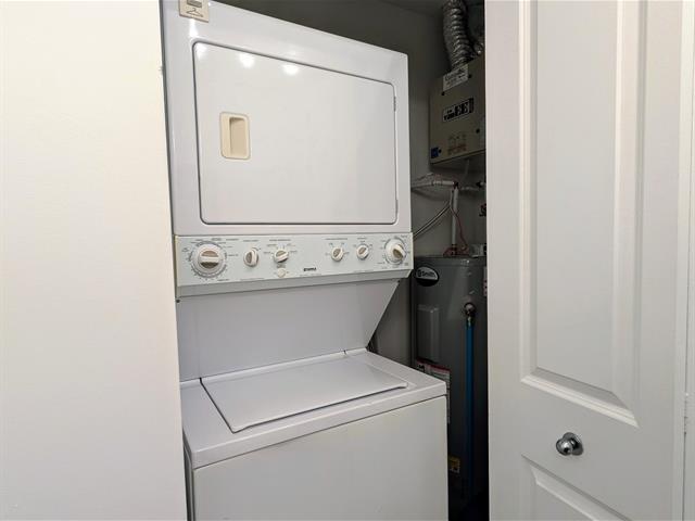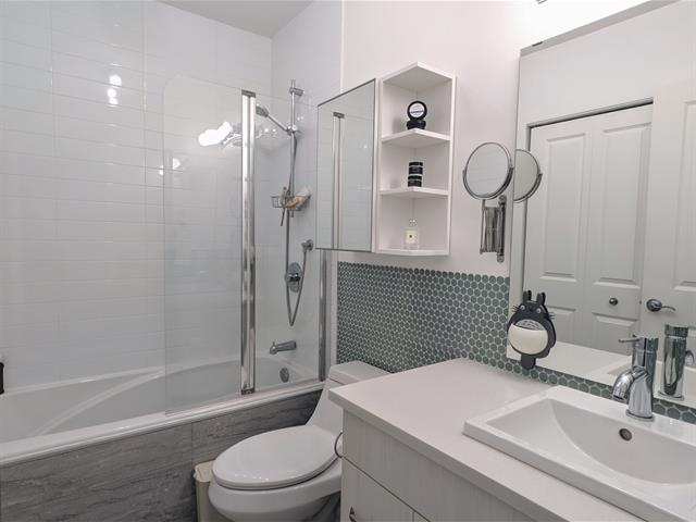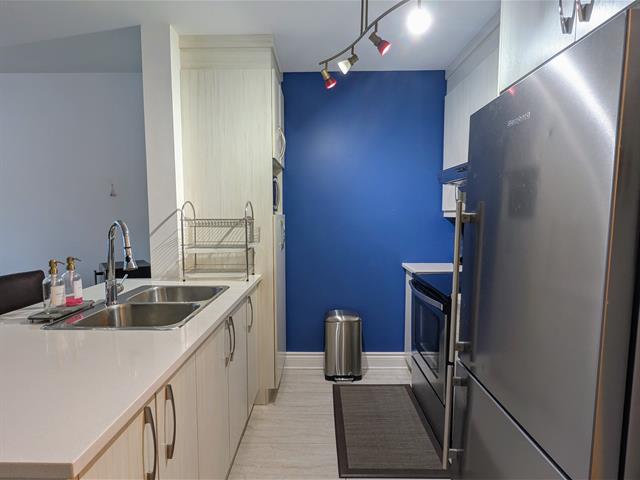 ** About this Condo: - on demi-basement floor. - spacious one-bedroom condo with front and rear balconies. - when you enter, to your left you'll find the full-equipped kitchen with quartz counter tops, dining area, and living room, and to the right, you will find the bathroom and a laundry room with washer and dryer inside. Further down, the bedroom has two windows and a space that can be used as a home office, with an additional exterior exit.