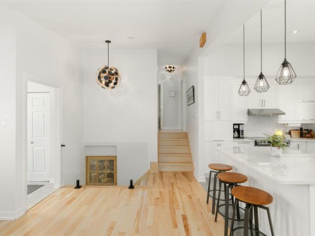 Beautiful split-level home located in a sought-after, family-friendly neighborhood! This bright property features 4 bedrooms (3 upstairs, 1 in the basement) and 2 full bathrooms. The open-concept main floor showcases a stunning kitchen renovated in 2020 with heated floors, quartz countertops, a central island, and ample cabinetry. Living room and bedrooms feature cherry wood floors. Cozy basement with brick accent wall, compliant wood-burning fireplace, and cork flooring. Private landscaped backyard with terraces, spa, and shed. Close to schools, parks, metro, and major highways. À must see!