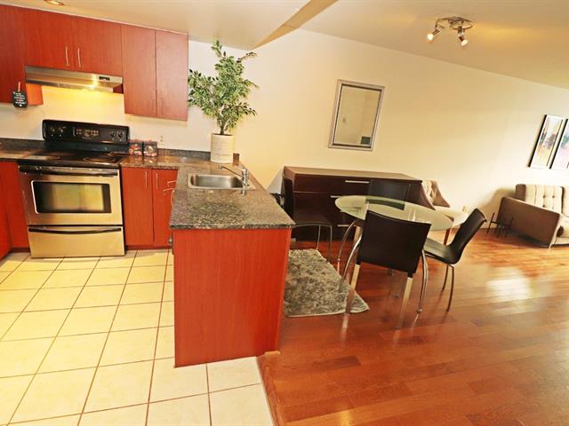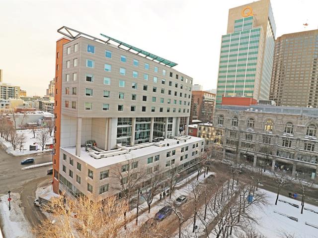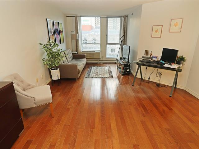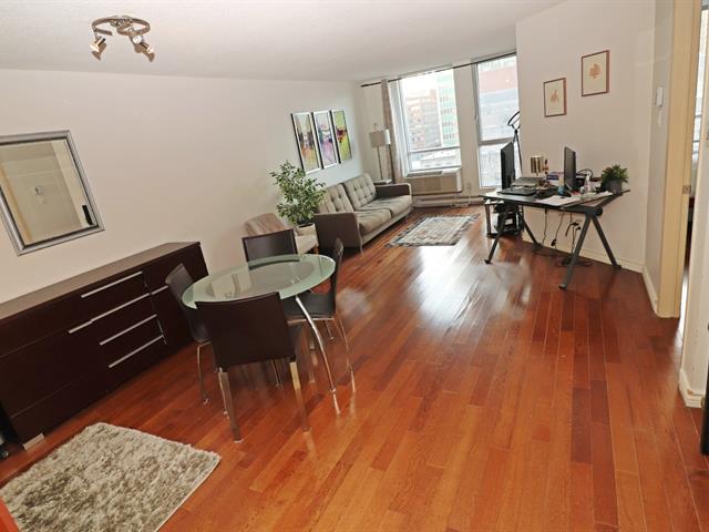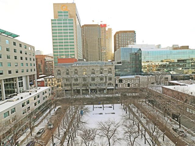 Only 9 neighboring condos on this floor. One bedroom unit (700 sq.ft gross) in a 2006 building. This apartment is located in the summer festivals area, and overlooks the park of peace near the "Quartier des spectacles" promising you a happy dwelling full of festive emotions.