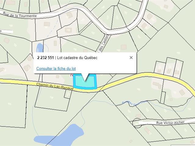 ________________________________________ EMPLACEMENT -- LOCALISATION Situé sur le Chemin du Lac Renaud, ce terrain bénéficie d'un environnement naturel paisible, au coeur des Laurentides, dans la charmante ville de Sainte-Adèle. Un secteur reconnu pour sa qualité de vie, ses paysages boisés et sa proximité avec de nombreuses activités de plein air, tout en demeurant facilement accessible. ________________________________________ ACCESSIBILITÉ *Accès rapide à l'Autoroute 15 *Environ 60 minutes de Montréal *Routes locales bien entretenues, idéales pour résidence principale ou secondaire ________________________________________ SERVICES À PROXIMITÉ *Écoles primaires et secondaires *Épiceries, pharmacies, restaurants et commerces *Services médicaux et cliniques *Centre-ville de Sainte-Adèle à courte distance ________________________________________ ATTRAITS ET ACTIVITÉS (À COURTE DISTANCE) *Parc régional de la Rivière-du-Nord -- sentiers, vélo, plein air *Parc Linéaire Le P'tit Train du Nord -- vélo, marche, ski de fond *Mont Chantecler *Station touristique Sommet Saint-Sauveur *Golfs, spas, lacs, sentiers pédestres *Activités quatre saisons : ski alpin, ski de fond, raquette, randonnée, vélo, baignade ________________________________________ POINTS FORTS Secteur recherché des Laurentides Cadre naturel et tranquille Proximité des services et activités Facile d'accès depuis Montréal Idéal pour projet résidentiel ou refuge de villégiature ________________________________________