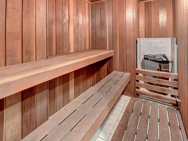 L'immeuble se distingue par ses nombreux services : piscine extérieure chauffée, sauna, conciergerie sur place, ascenseurs, service postal interne, stationnement intérieur pour vélos et garage privé. L'eau chaude est incluse dans les frais de condo, ce qui représente un avantage pratique, notamment en cas de panne électrique. Une génératrice assure par ailleurs le fonctionnement des ascenseurs et des portes d'accès.