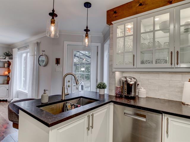 Fixtures, pôles, stores, lave-vaisselle, cuisinière, réfrigérateur, gazebo, thermopompe.