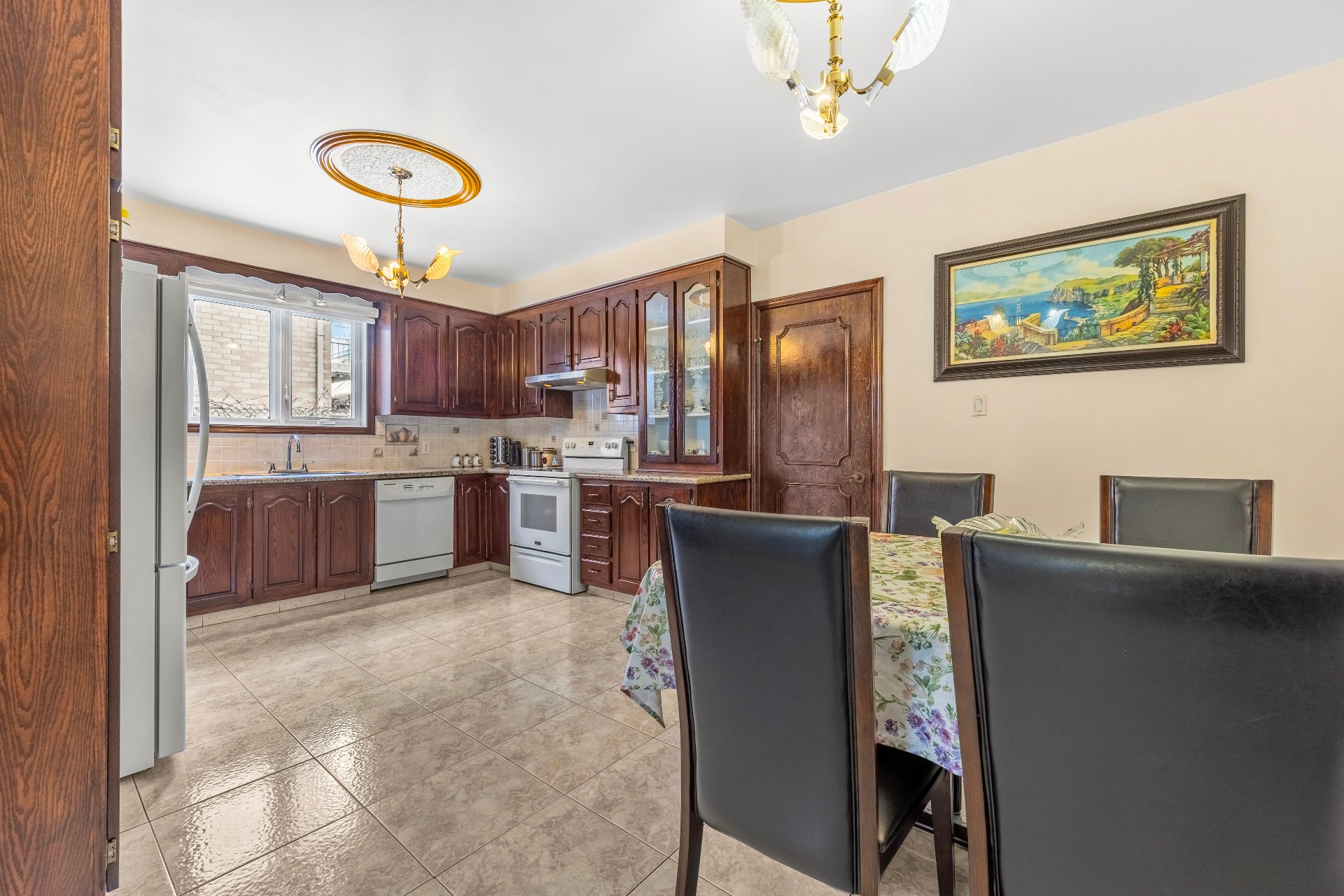 La cuisine en bois massif, rehaussée de comptoir de granite, devient le coeur de la maison. Elle s'ouvre sur une dinette conviviale et une salle à manger de pleine grandeur, idéales pour recevoir avec distinction. Chaque espace a été pensé pour conjuguer fonctionnalité, esthétisme et plaisir de recevoir.