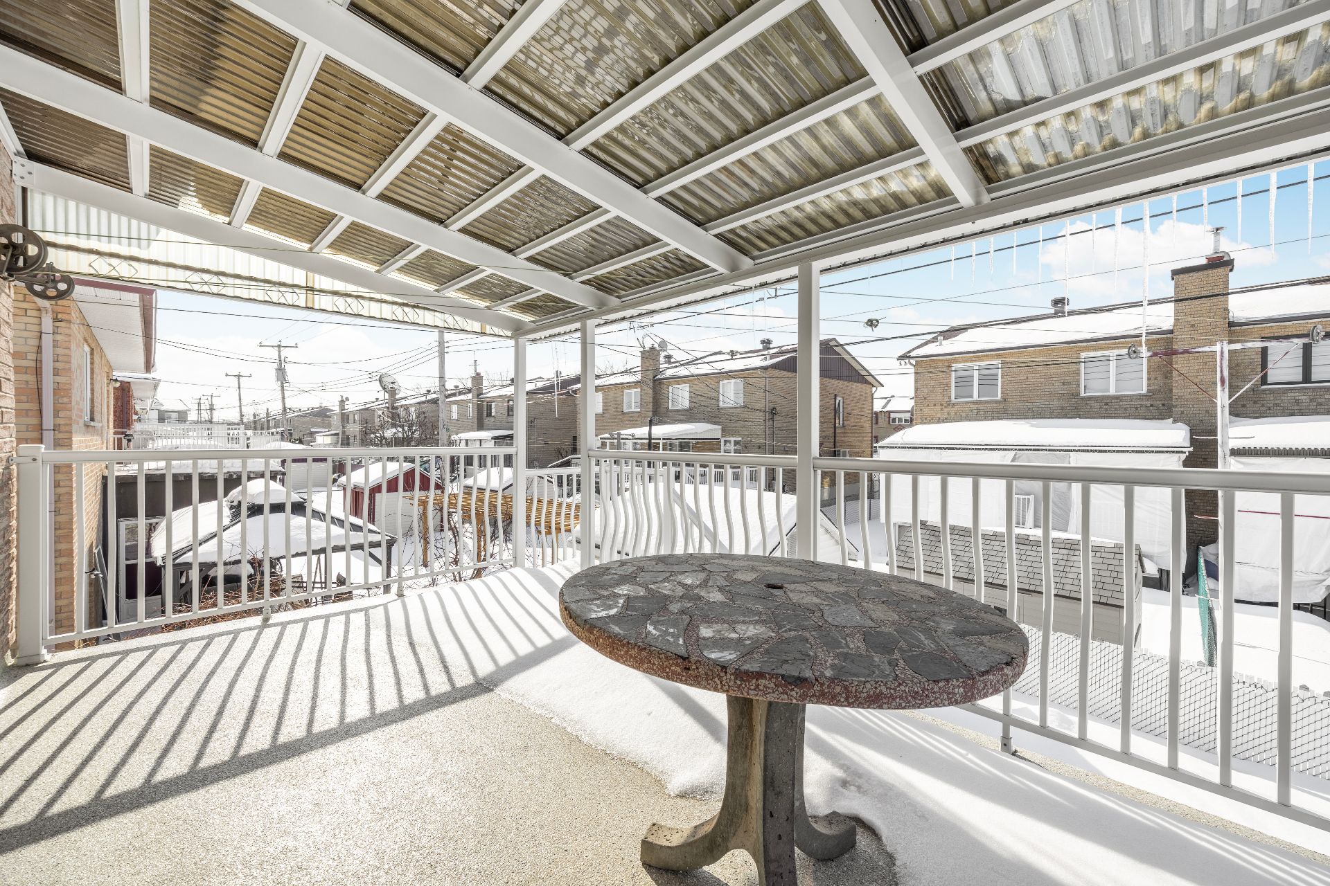 À l'extérieur, l'aménagement paysager durable en pavé offre un entretien minimal tout en conservant un équilibre harmonieux avec les espaces verts. Les terrasses de béton couvertes, avec finition époxy, permettent de profiter pleinement de l'extérieur en toute saison.