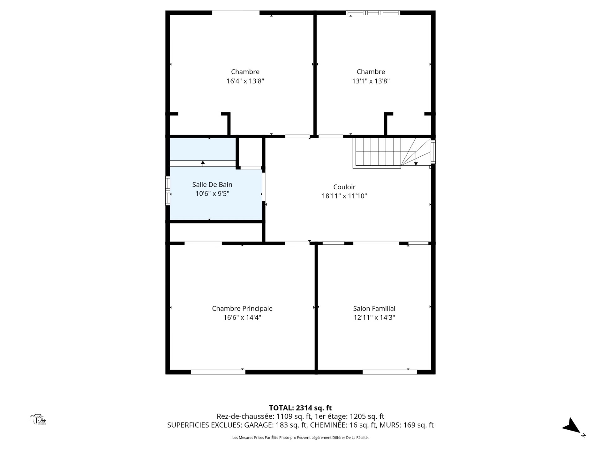 | Salle de bains | 10.6 x 9.5 P | 2ième étage | Céramique |