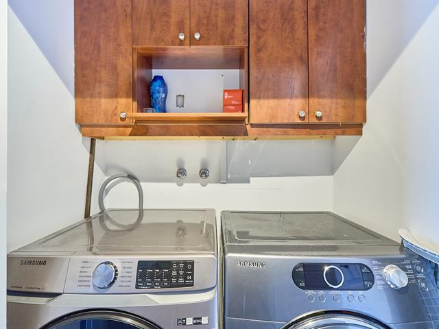 La chambre à coucher, vaste et confortable, offre un bel espace de rangement. L'unité comprend également une salle de bain complète ainsi que les installations laveuse-sécheuse, un avantage apprécié des locataires.