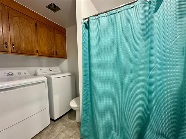 Luminaires, atelier, place de rangement pour les locataires, tondeuse électrique, aspirateur au sous-sol et les 2 déshumidificateurs.