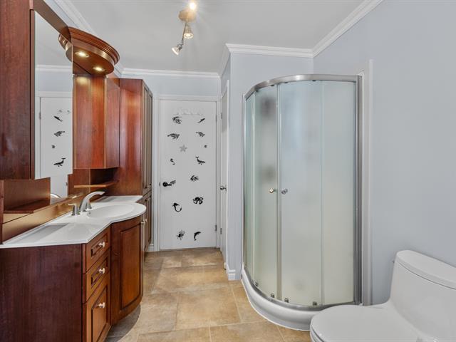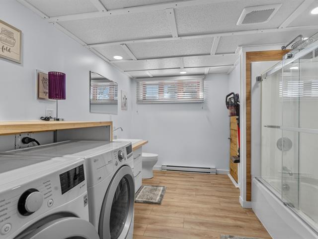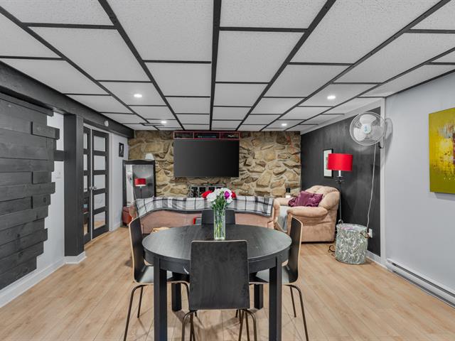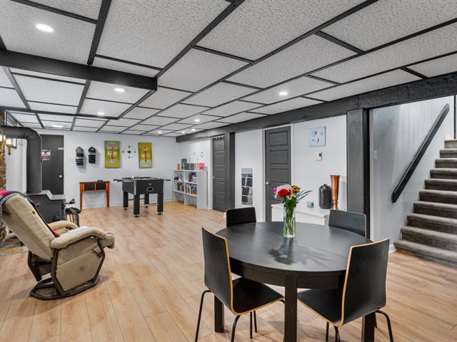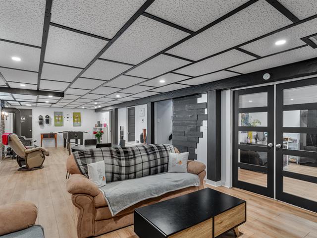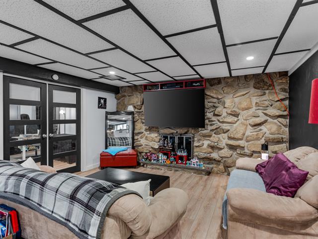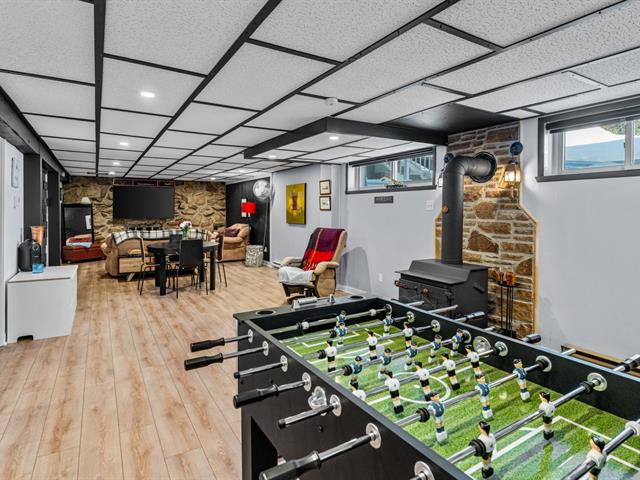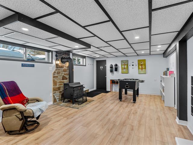 Le sous-sol, accessible par une entrée indépendante, offre un espace polyvalent comprenant une grande salle familiale avec foyer au bois, deux chambres à coucher de bonnes dimensions ainsi qu'une salle de bain complète avec installation laveuse-sécheuse.