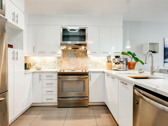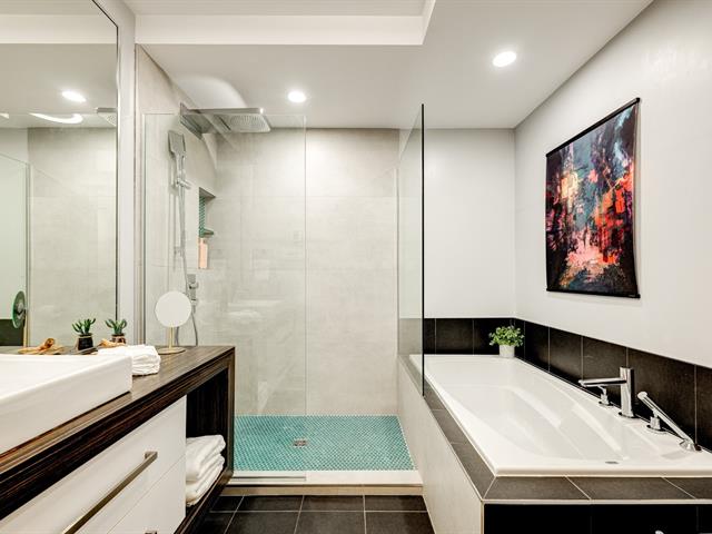 Superbe condo à louer semi-meublé. Vaste, très lumineux, dans immeuble récent, (superficie + de 875pc). Belle et très grande pièce à vivre, salon, cuisine avec comptoir lunch, salle à manger. La Chambre de belle taille, comporte aussi un coin bureau pour vous permettre de faire du télétravail. Un grand walk-in complètent l'impression de grandeur. Salle de bain avec baignoire et douche. 1 balcon à l'avant adjacent à la chambre pour le café du matin et très grande terrasse ensoleillée à l'arrière, côté salon, pour vos BBQ et apéros avec famille et amis. Très belle prestation : installer vos meubles et profiter de votre nouveau nid.