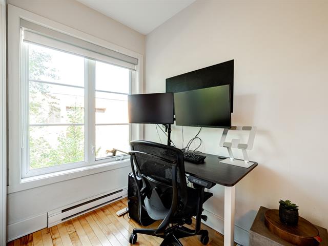 Superbe condo à louer semi-meublé. Vaste, très lumineux, dans immeuble récent, (superficie + de 875pc). Belle et très grande pièce à vivre, salon, cuisine avec comptoir lunch, salle à manger. La Chambre de belle taille, comporte aussi un coin bureau pour vous permettre de faire du télétravail. Un grand walk-in complètent l'impression de grandeur. Salle de bain avec baignoire et douche. 1 balcon à l'avant adjacent à la chambre pour le café du matin et très grande terrasse ensoleillée à l'arrière, côté salon, pour vos BBQ et apéros avec famille et amis. Très belle prestation : installer vos meubles et profiter de votre nouveau nid. À louer Semi-Meublé. À 2 pas des commerces, boulangeries, restaurants, bars de la vibrante Promenade Ontario. 10 min à pied Metro Préfontaine.