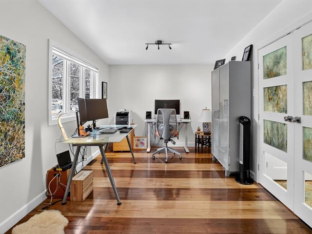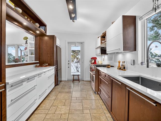 Située au coeur du Vieux-Rosemère, cette maison zen et lumineuse vous charmera dès l'entrée. Au rez-de-chaussée, une grande pièce conviviale avec plancher chauffant, idéale pour salle familiale ou cinéma maison, mène à un garage aménagé en atelier (2017). Le sous-sol offre une pièce avec plancher chauffant et garde-manger, ainsi qu'une grande salle multifonction rénovée en 2020. L'aire de vie principale, baignée de lumière, offre une vue spectaculaire sur la verdure. Le salon, orienté sud-est, dispose d'un foyer au gaz Mendota avec manteau en ardoise noire. La cuisine (2022) de style chef propose quartz blanc, concept bicolore, deux réfrigérateurs et grand évier inox. La salle à manger s'ouvre sur le patio en bois et le jardin, avec deux auvents rétractables Somfy. À l'étage, la salle de bain (2022) combine élégance et confort : quartz blanc, porcelaine, mosaïque et plancher chauffant. Une pièce double lumineuse avec lits escamotables offre flexibilité. La chambre principale séduit par son calme, ses garde-robes intégrées, sa salle d'eau privée et son grand patio couvert. Un véritable havre de paix, alliant confort, lumière et nature, au coeur d'un secteur recherché.