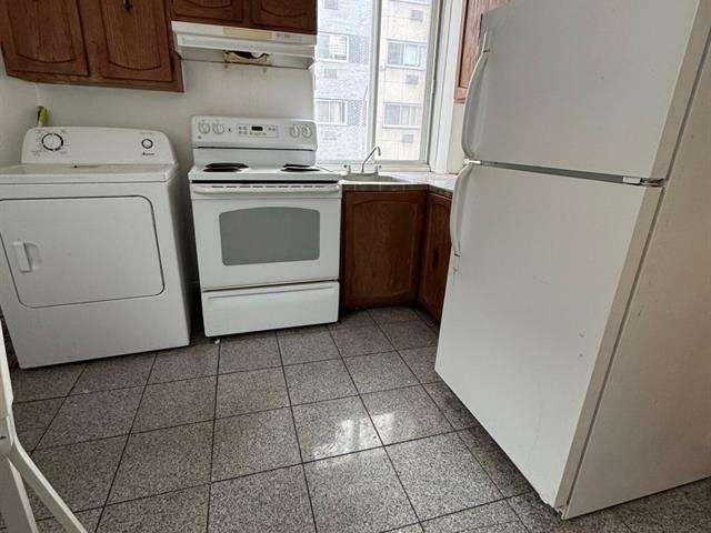 Refrigerateur, cuisiniere, laveuse, secheuse, eau chaude.
