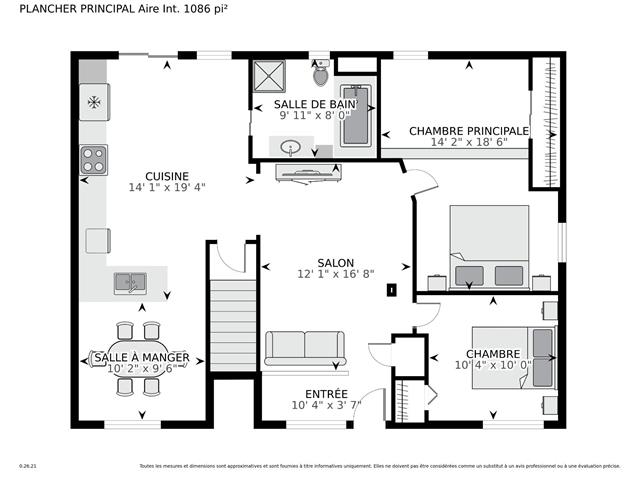 Chambre à coucher principale | 14.2 x 18.6 P | Rez-de-chaussée | Plancher flottant |