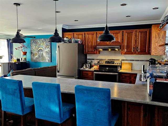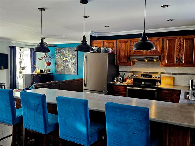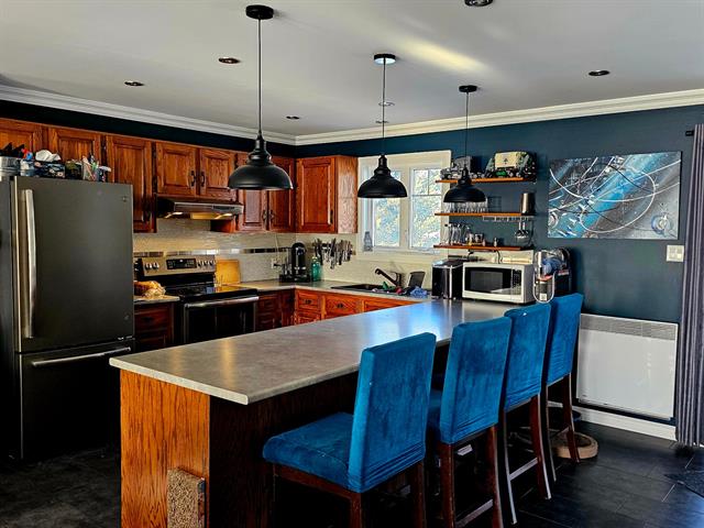 Située sur un terrain de 27079 pieds carrés, cette propriété rénovée avec goût vous offre 3 chambres à coucher, une salle de bain et une salle d'eau, des aires ouvertes au rez-de-chaussée et au sous-sol (fini en majeure partie), une salle familiale, un bureau, un immense stationnement, un garage double, une cour clôturée et aménagée avec toit cathédrale, spa et cabanon. La fenestration y est abondante afin que vous puissiez profiter du panorama et des couchers de soleil. Presque clé en main, c'est une ocasion dans le secteur!