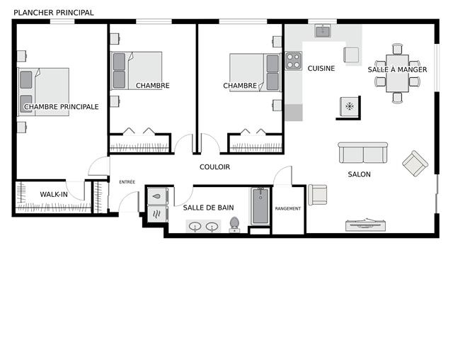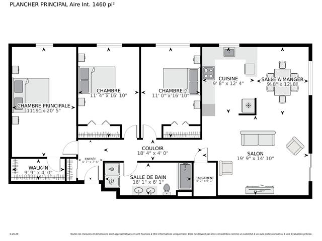 | Salon | 19.9 x 14.10 P | 3ième étage | Plancher flottant |
