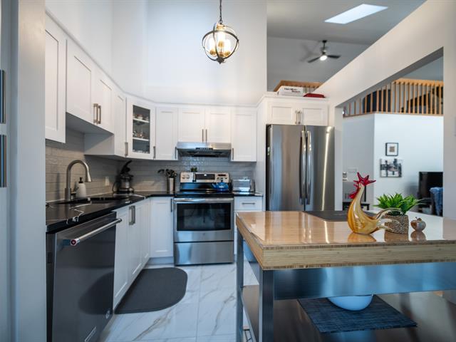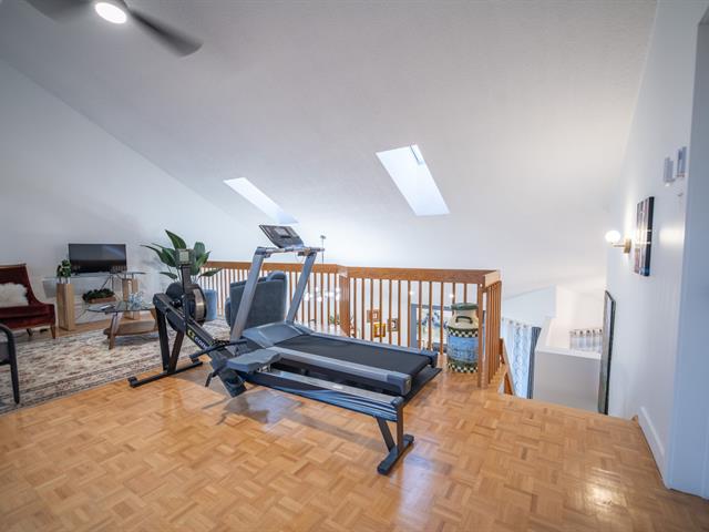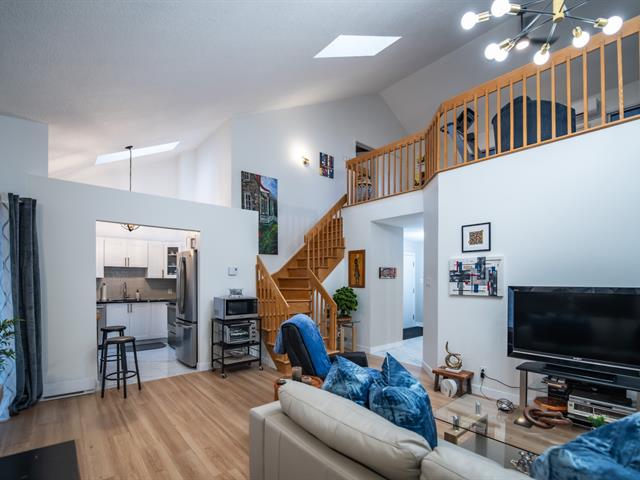 Très grand condo sur deux étages, clé en main et près de tous les services. Vous aimerez être à distance de marche du Carrefour Laval, du terminus d'autobus Le Carrefour, du Centropolis, du nouveau centre aquatique, d'un cinéma, etc. Le condo a été rénové au goût du jour . La mezzanine pourrait vous servir de troisième chambre, de bureau, de salle d'exercices. Le complexe a aussi une piscine extérieure très bien entretenue pour vous rafraîchir et vous détendre. Vous bénéficierez d'un stationnement intérieur, d'un stationnement extérieur et d'un espace au garage pour votre vélo. Une visite s'impose et vous charmera!