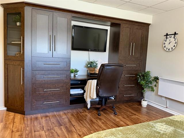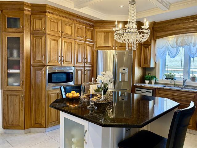 Réfrigérateur, cuisinière, micro-ondes,thermopompe, tous les meubles intégrés, luminaires, toiles et stores, un aspirateur central dans la résidence et un aspirateur central dans le garage attaché, système de chauffage du garage attaché.