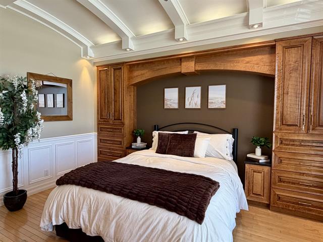Vous rêvez d'une maison où tout respire la qualité, la douceur et le bienêtre. Cette propriété a exactement ce qu'il faut pour vous séduire : des matériaux haut de gamme, une ambiance paisible et des espaces pensés pour être chaleureux et invitants. Avec ses deux chambres sur le même étage, ses pièces baignées de lumière, son foyer au gaz, ses meubles intégrés en bois massif et ses planchers radiants, vous vous sentirez immédiatement chez vous. La cuisine et les salles de bain sont à la fois belles, pratiques et agréables à vivre. Vous aimerez aussi le garage attaché avec accès au sous sol, ainsi que le grand garage détaché.