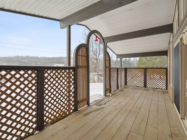 À l'extérieur : immense patio mi-couvert, spacieuse galerie avant, allée en demi-lune pouvant accueillir 7 véhicules et plus, deux cabanons, serre et abri d'auto.