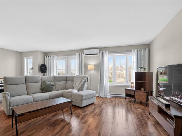 LES VISITES DÉBUTES SAMEDI LE 4 AVRIL A 14:00 Superbe condo de 2 chambres au 2e étage, offrant 89,3 m2 de vie lumineuse et bien agencée. Cuisine haut de gamme avec armoires mélamine, comptoir agencé et luminaires cristal. Salle de bain avec bain exagonale et douche indépendante. Thermopompe murale neuve récente, échangeur d'air, 2 balcons, cabanon 32 pi² et 1 stationnement. Frais de copropriété avantageux à 250 $/mois. Unité impeccablement entretenue, turnkey, prête à occuper. À 2 minutes de l'autoroute 20, école primaire en face, garderie, parc et golf à proximité immédiate.