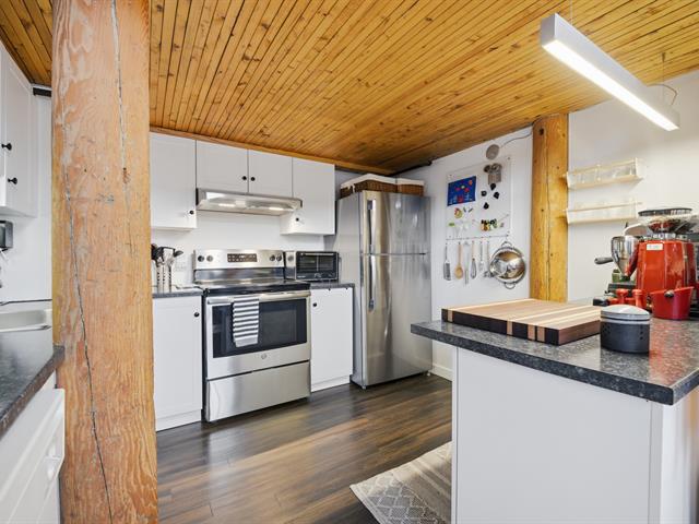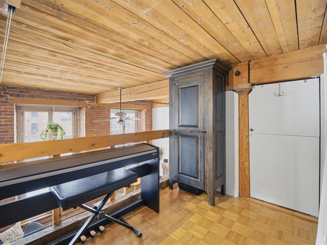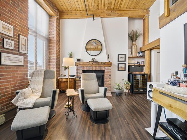 Dès votre entrée, vous serez impressionné par le volume exceptionnel qu'offrent les plafonds de 13 pieds. L'espace de vie, baigné de lumière naturelle grâce à ses trois immenses fenêtres, combine parfaitement la chaleur du bois, la brique apparente et un design contemporain.