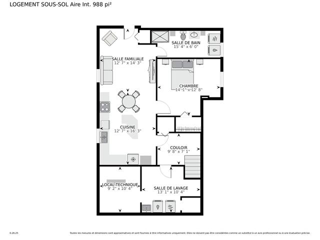 | Salon | 12.6 x 13.11 P | Sous-sol | Plancher flottant |
