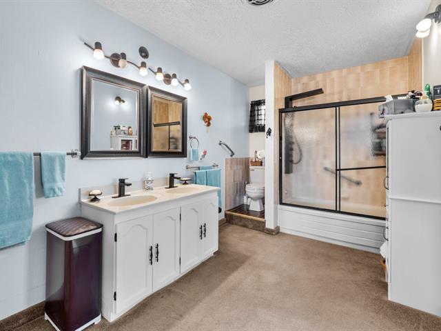 Le sous-sol entièrement aménagé offre une spacieuse salle familiale attenante à une salle de loisirs, parfaite pour les moments en famille, ainsi qu'une salle de bain moderne rénovée en 2025 avec douche indépendante. Un espace de rangement supplémentaire s'y ajoute.