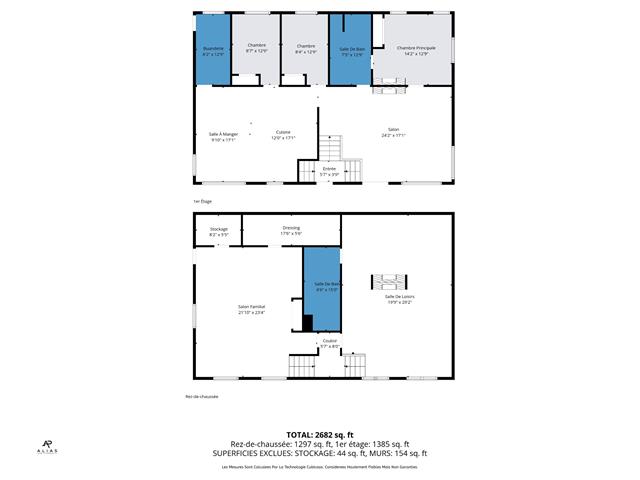| Chambre à coucher | 8.4 x 12.9 P | Rez-de-chaussée | Tapis |