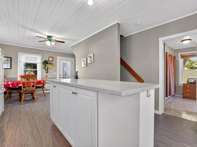 Au premier étage, vous trouverez un salon accueillant, une cuisine fonctionnelle, une salle à manger lumineuse et une salle de bain équipée d'une entrée pour laveuse-sécheuse, pratique pour le quotidien. À l'étage supérieur, deux chambres offrent un espace privé pour chacun, avec une salle de bain attenante à la chambre principale, idéale pour plus d'intimité et de confort.