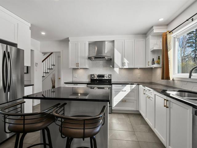 Cuisine rénovée et fonctionnelle : -Superbes comptoirs de granite. -Armoires modernes avec :portes coulissantes pratiques, charnières avec amortisseurs pour fermeture douce. -Rangement abondant et optimisation intelligente des espaces. -Dosseret contemporain et vaste surface de travail.