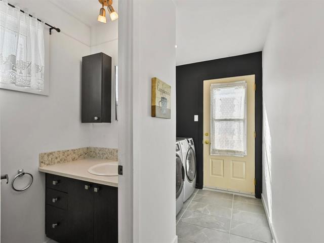 Salle de lavage pratique: -Accès direct à la cour arrière par une porte latérale donnant dans la salle de lavage, un atout très pratique pour la vie quotidienne, les enfants, les animaux ou l'entretien extérieur. -Aires de vie supplémentaires -Coin détente chaleureux avec foyer en pierre naturelle offrant cachet et ambiance. -Accès direct à l'extérieur depuis les espaces de vie.